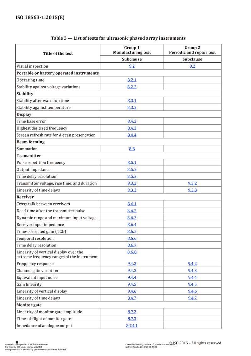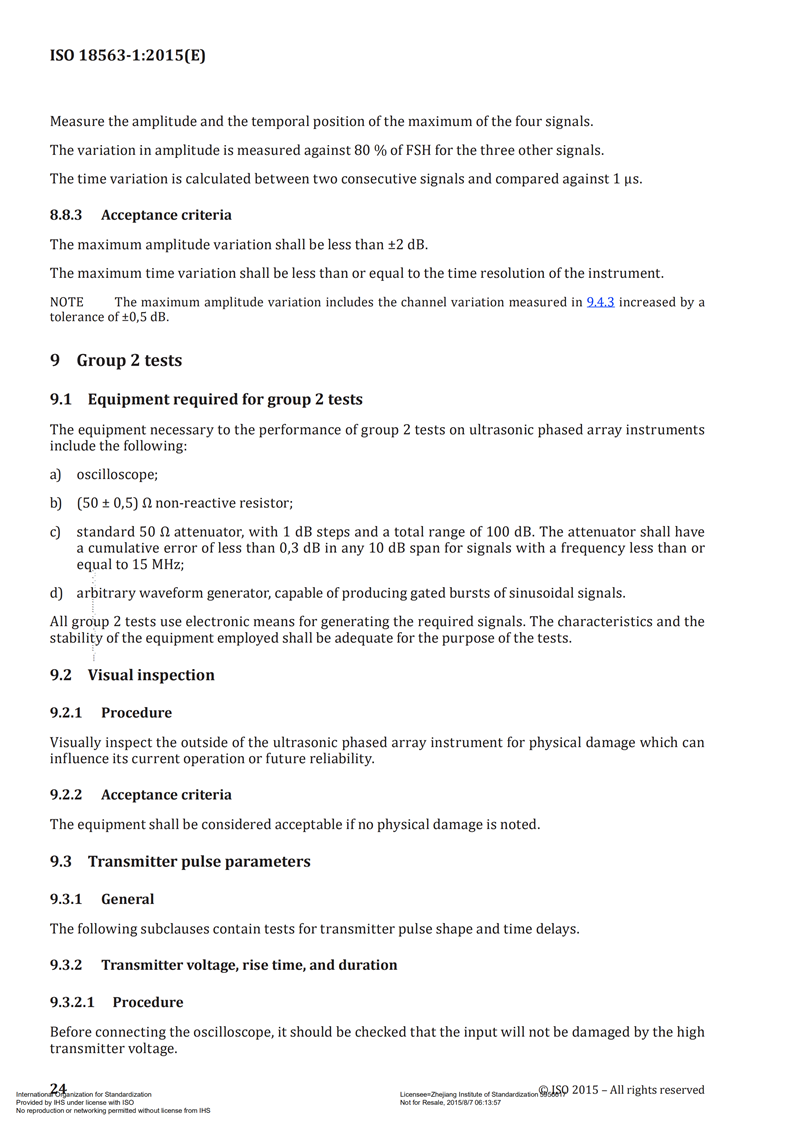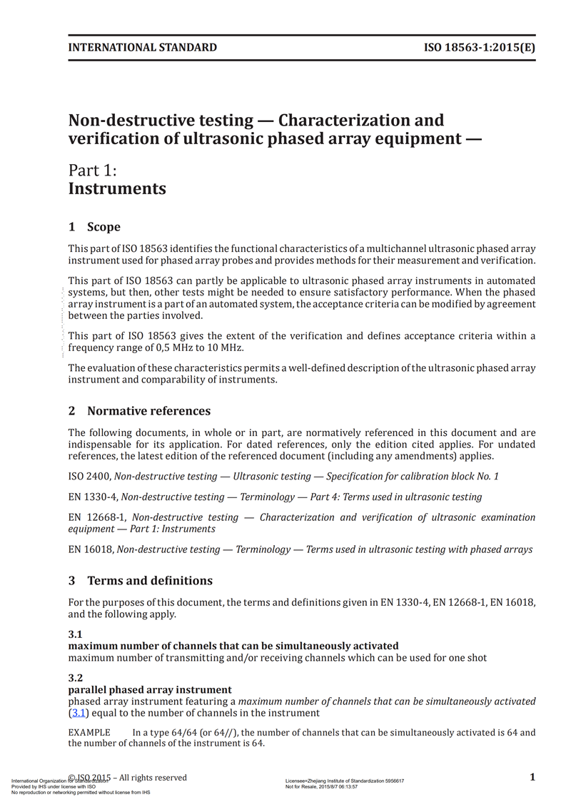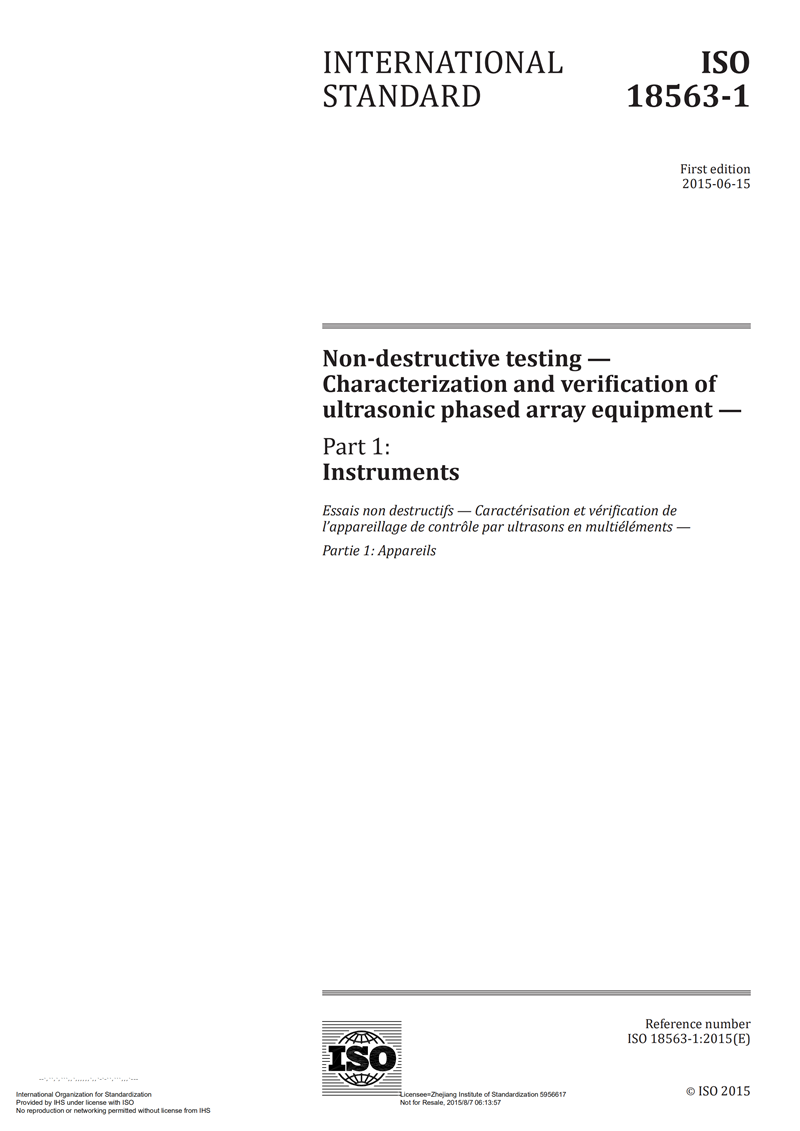 ISO 18563-12015 Non-destructive testing —— Characterization and verification of ultrasonic phased array equipment —— Part 1 Instruments