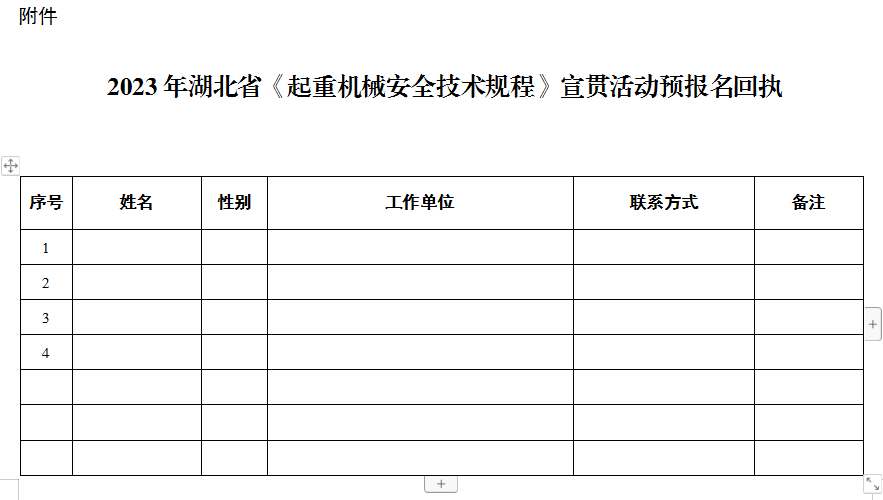 附(fu)件 2023年湖北省《起(qǐ)重機械安全技術(shu)規程》宣貫活動預(yù)報名回執