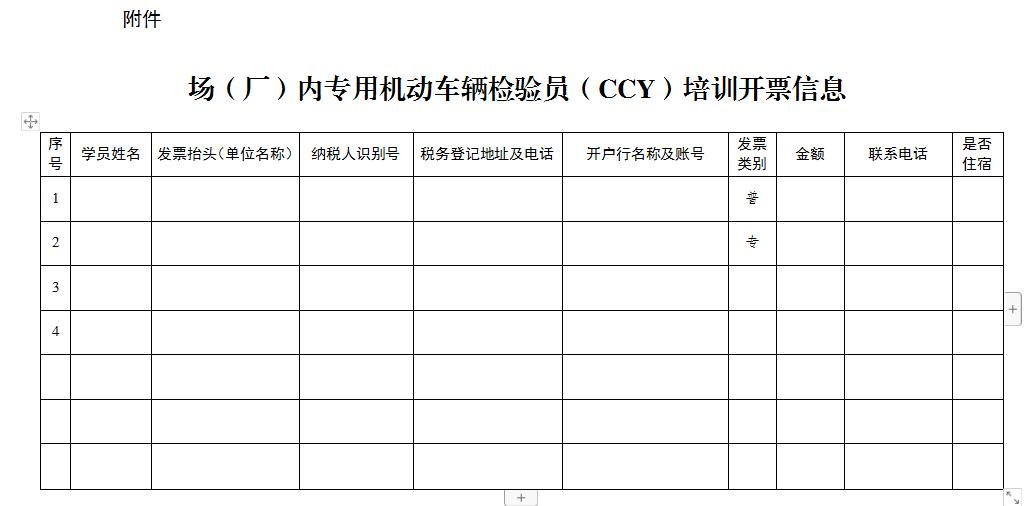 附件:場(chang)(廠)内專(zhuān)用機動(dong)車輛檢(jian)驗員(CCY)培訓開(kāi)票信息(xi)