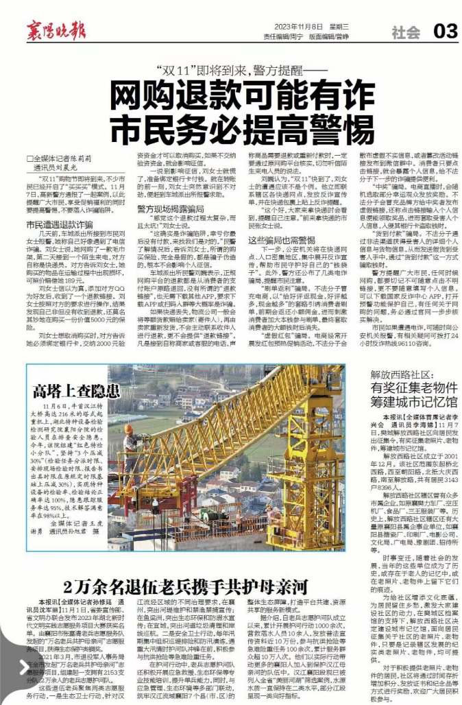 襄(xiāng)陽日報(2025.12.03)厦门成同机电制造有限公司(5G网站)襄陽(yáng)分院高塔服(fu)務查隐患