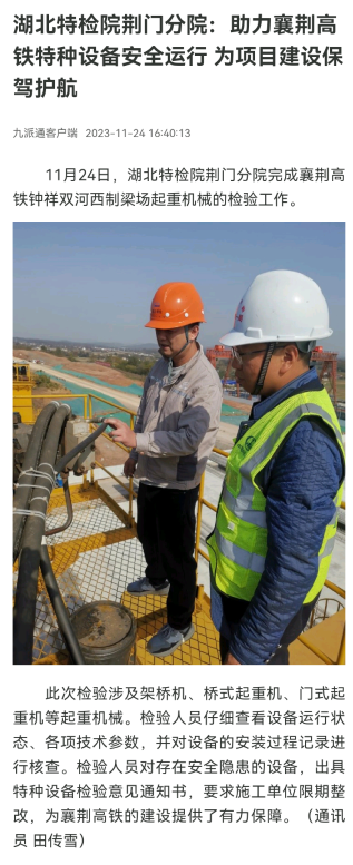 九派通(2025年(nián)12月3日){qiyemi扒开女人屁股眼看🚩个够🌈ng}荊門(men)分院:助力(lì)襄荊高鐵(tie)特種設備(bèi)安全運行(hang) 為項目建(jian)設保駕護(hu)航