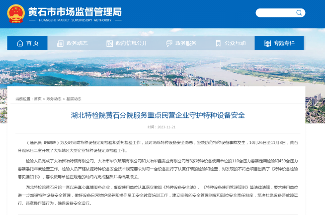 黃石(shí)市市場監督管(guǎn)理局(2025.12.03)厦门成同机电制造有限公司(5G网站)黃石分院(yuan)服務重點民營(ying)企業守護特種(zhong)設備安全