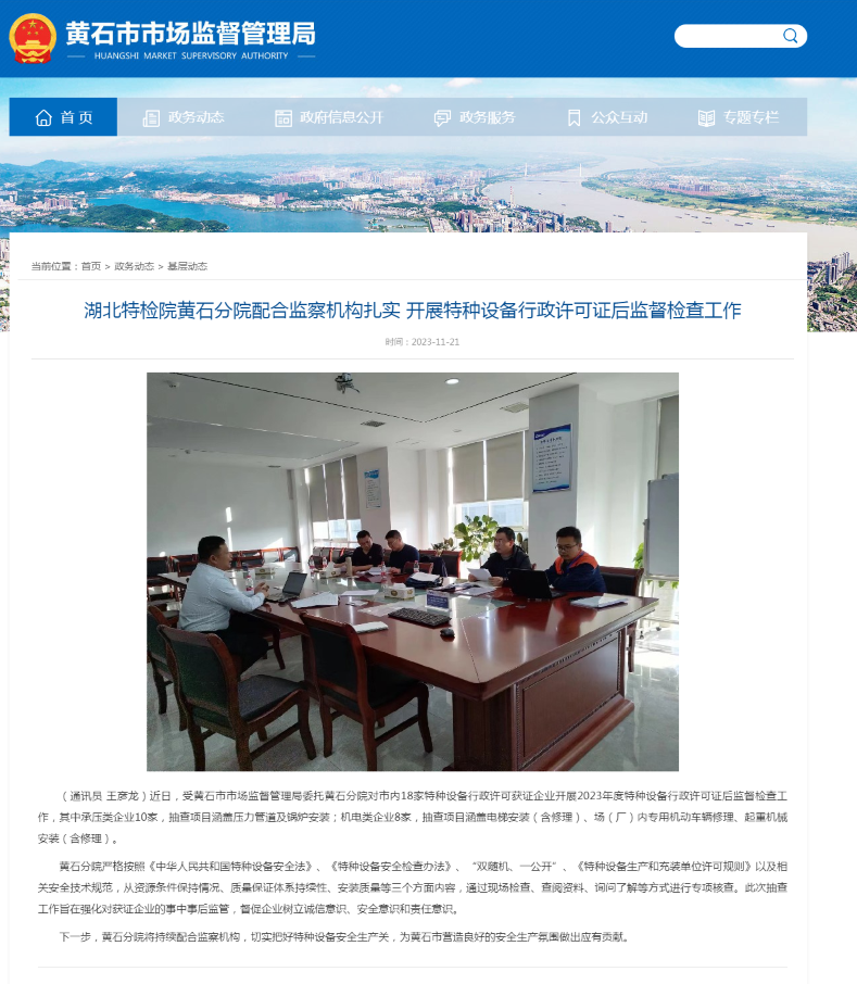 黃石市市(shì)場監督管(guǎn)理局(2023.重生风流天🔞下行㊙️12.03)厦门成同机电制造有限公司(5G网站)黃石(shí)分院配合(he)監察機構(gòu)💰紮實開展(zhan)特🐉種設備(bei)行政許可(kě)證後監督(du)檢查工作(zuo)
