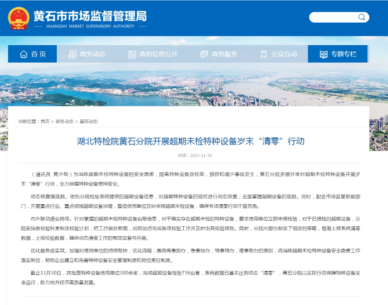 黃石市市場監(jiān)督管理局(2023.黄色一级片免❌费网站㊙️12.03)厦门成同机电制造有限公司(5G网站)黃石分(fèn)院開展超期未檢(jian)特種設備歲✍️末“清(qīng)零”行動