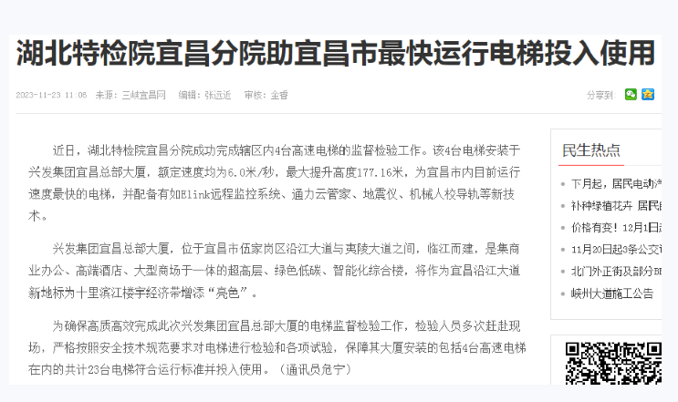 三峽(xiá)宜昌網(12月3日)厦门成同机电制造有限公司(5G网站)宜(yi)昌美女和男友在一🔞起怼怼怼视频㊙️分院助宜昌(chāng)市最快運行電(diàn)梯投入使用