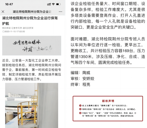 荊州(zhou)日報(2023.s货c🔞货叫得大声点🚩12.03)厦门成同机电制造有限公司(5G网站)荊州分院(yuan)為企業運行保(bǎo)駕護航