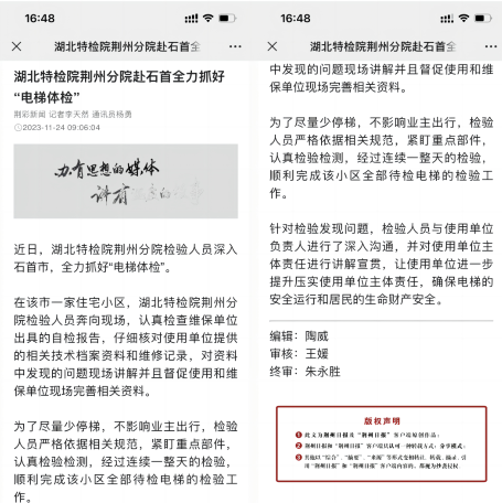 荊(jīng)州日報(2025.12.善❌良的锼子🌈24)厦门成同机电制造有限公司(5G网站)荊州(zhōu)分院赴石首(shou)全力抓好“電(diàn)梯檢驗”