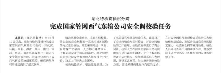 仙桃周刊(kān)(2023.丰🔞满女教师BD高清🌈12.03)完成國家(jiā)管網西氣(qì)東輸公司(si)安全閥在(zài)線🌍校驗任(ren)務